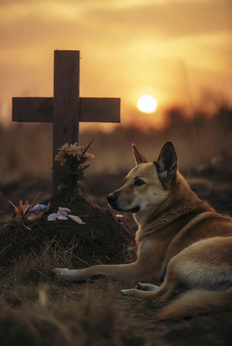 Every evening, as the sky turned gold and the cemetery grew quiet, a single dog would appear near one small wooden cross. She didn’t bark. She didn’t wander. She simply lay there, watching the fading light.