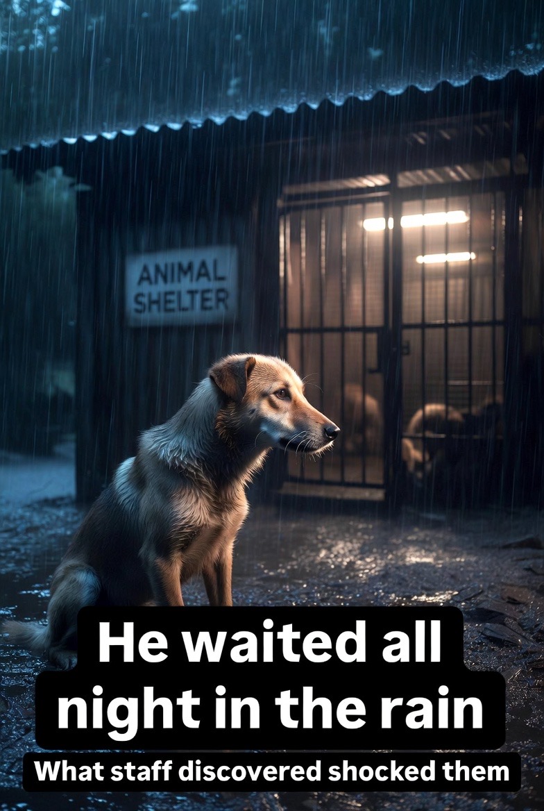 Shelter staff arriving early one morning noticed something unusual outside the gate. Sitting quietly in the rain was a dog, soaked but calm, as if he had been there for hours.