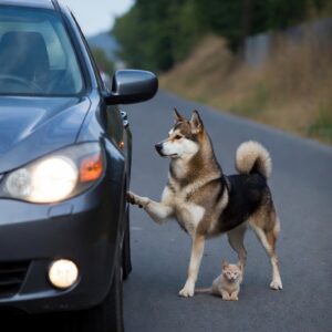 A driver heading down a quiet country road slowed suddenly when he spotted a dog standing directly in front of his car. The animal wasn’t running away…