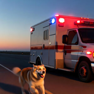 As an ambulance sped down a quiet highway at dusk, paramedics noticed something unusual in the side mirror — a large dog running along the shoulder, keeping…