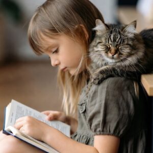 The room was quiet except for the soft turning of pages. The girl sat focused on her book, unaware of the small weight resting against her shoulder….