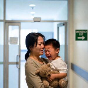 The hospital corridor was quiet except for soft footsteps and distant voices. Lin stood just outside her son’s room, watching him sleep with his favorite teddy tucked…