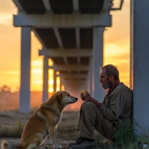Every evening, just before the sun dipped below the highway bridge, the same quiet routine played out. An older man would sit against the concrete pillar, unwrap…
