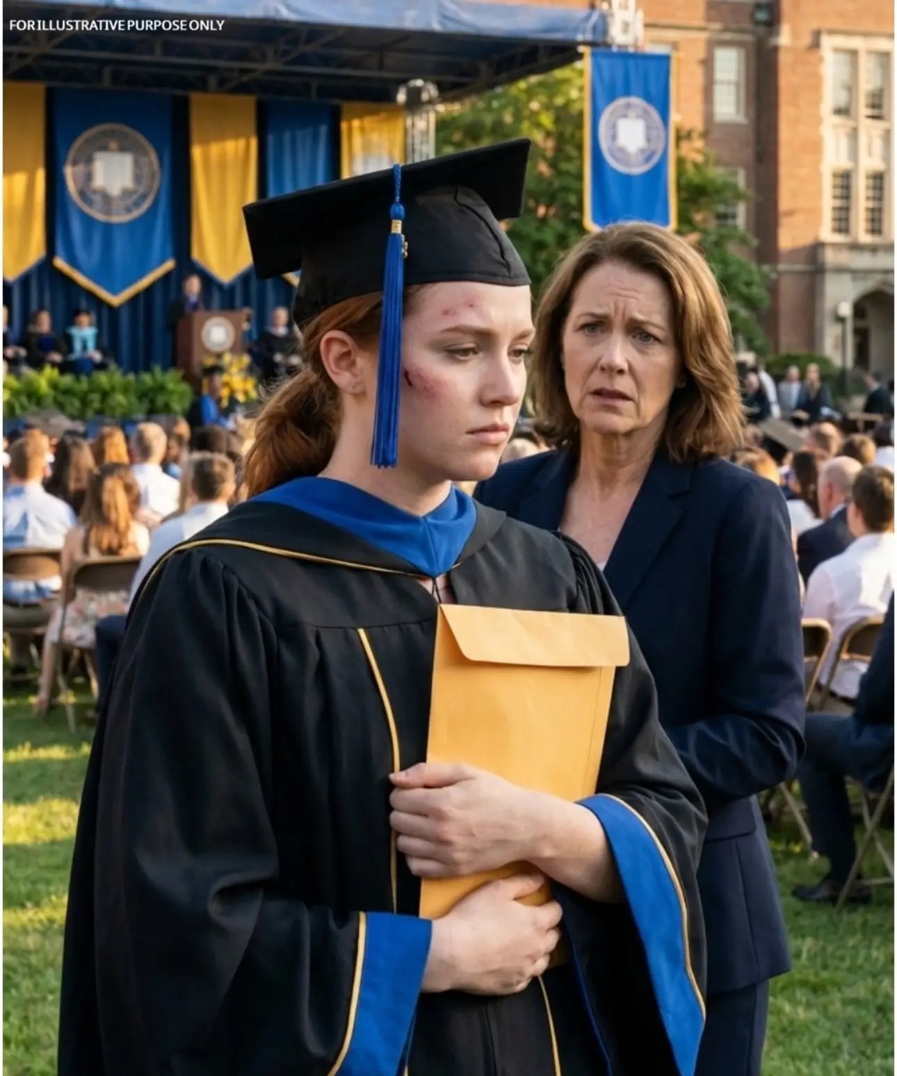 The young graduate tried to keep her composure as the ceremony continued, but the tension was obvious. Several people around them began whispering, wondering what could have caused such a painful moment on a day meant for celebration.