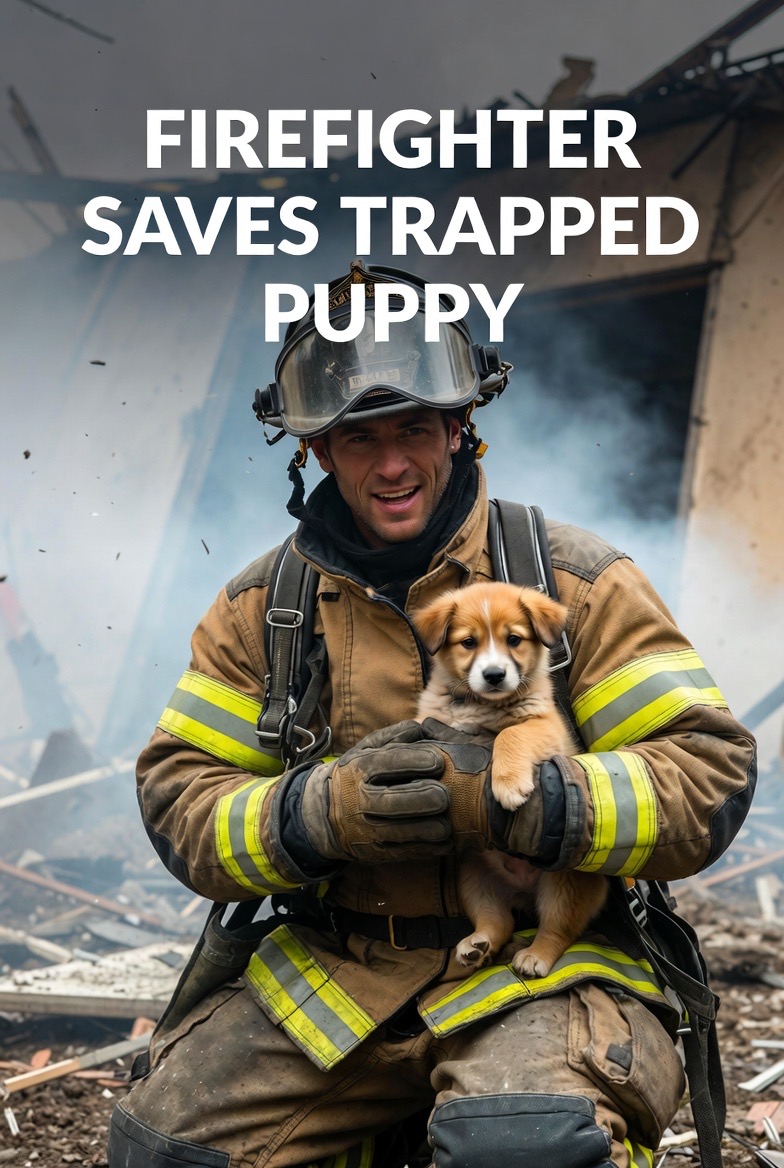 Carefully lifting the debris, the firefighter gently pulled the frightened animal free. Covered in dust but otherwise unharmed, the puppy was quickly carried outside to safety.