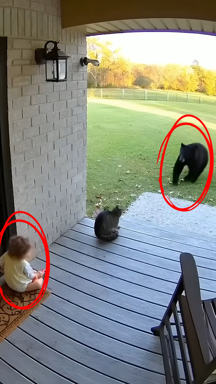 Sitting between the child and the bear was a house cat—small, calm, and completely outmatched. At first, it seemed like nothing would happen. The cat didn’t run. It didn’t hide. Instead, it held its ground, watching every movement.