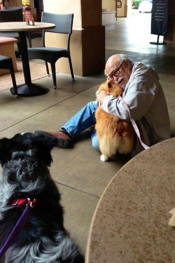 An elderly man had just sat down, quiet and alone, when suddenly everything changed. A small dog rushed toward him, tail wagging uncontrollably, pulling at the leash like it had been waiting for this exact moment.