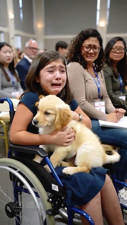 A young girl in a wheelchair sat quietly at first, holding a small golden puppy in her arms. At a glance, it looked like a simple interaction—just a child meeting a dog.