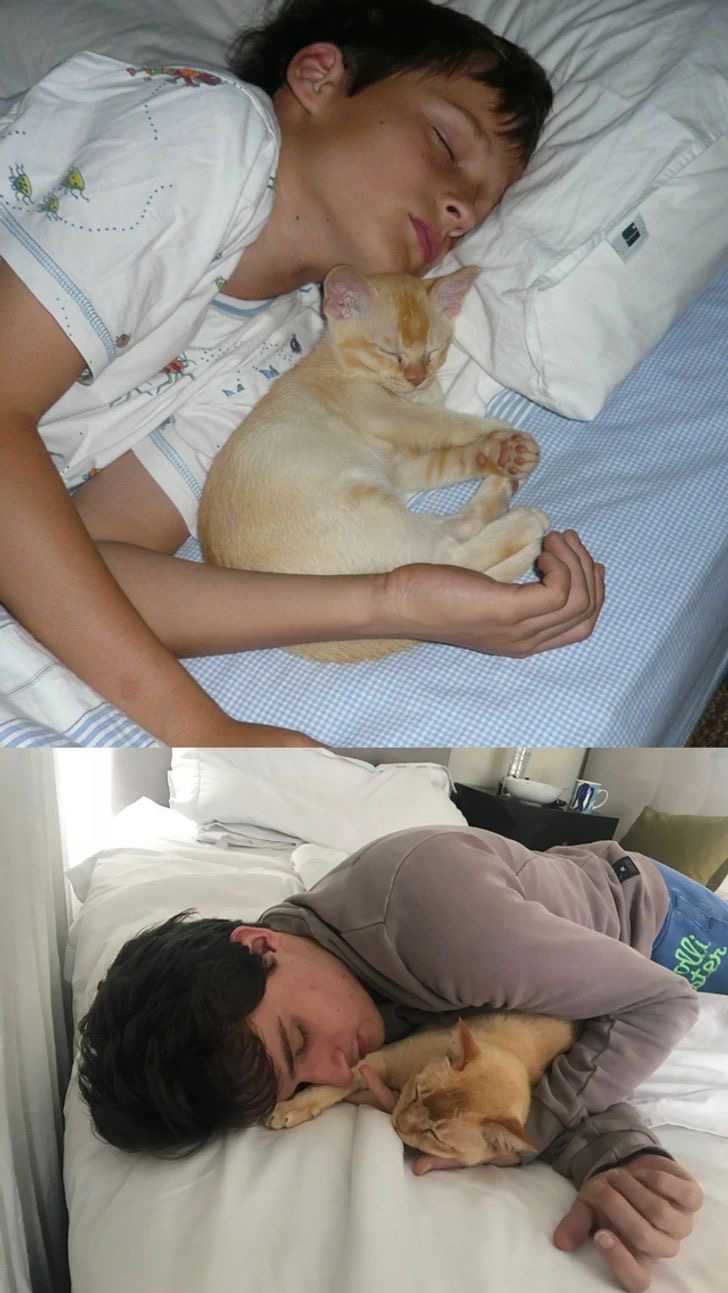But this time, everything looked different on the outside. The boy was no longer a child. The kitten was no longer small.