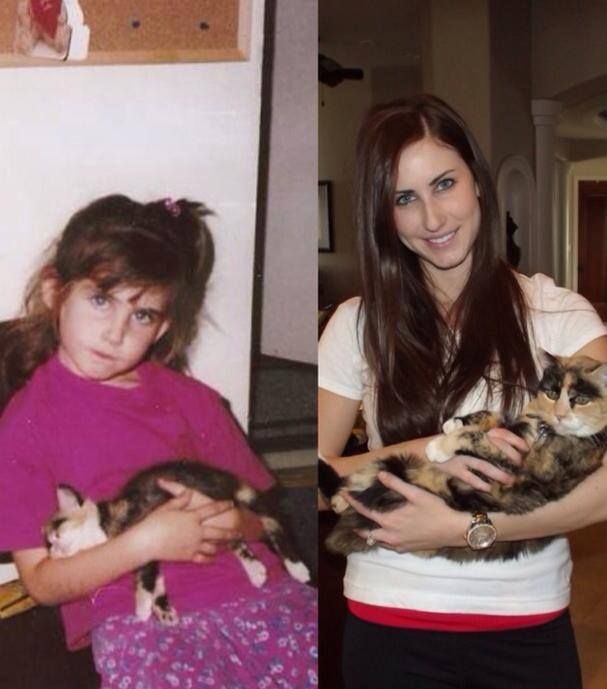 Girl Recreates Childhood Photo With Her Cat Years Later — One Detail Left Everyone Emotional
