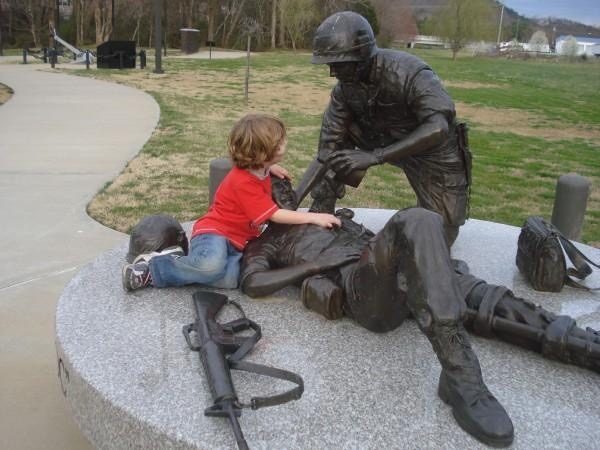 The sculpture showed a soldier tending to a fallen comrade—a powerful scene frozen in time. Most people looked at it and saw history.