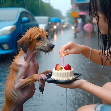 At first, it didn’t make sense. Why a cake? Why here, in the rain, for a dog no one seemed to care about?