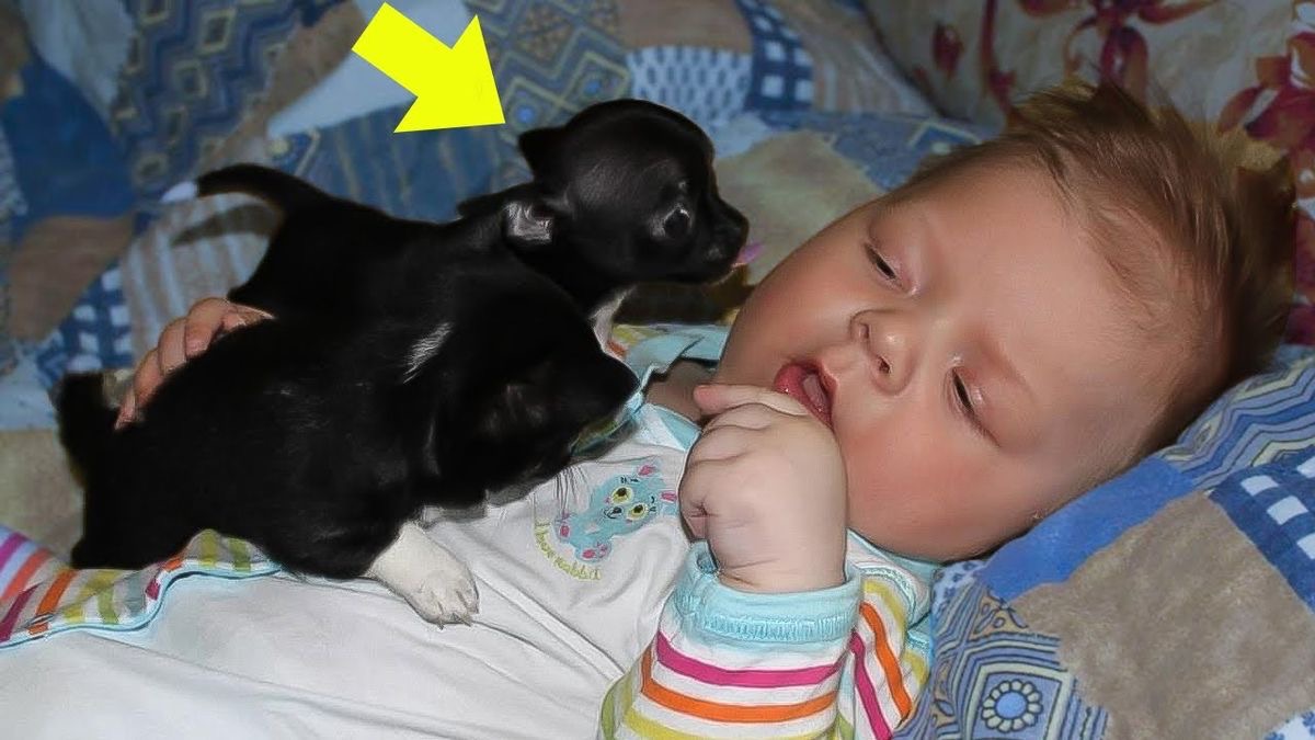 A tiny puppy, barely bigger than the baby’s hand, slowly climbed closer. Curious, careful, almost hesitant with every step.