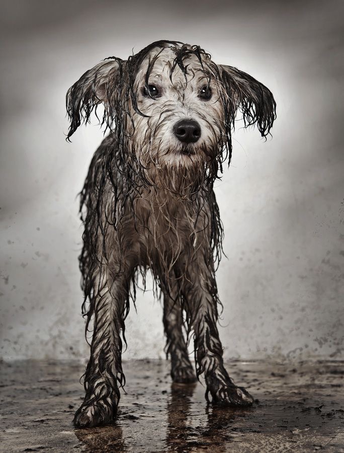 His fur clung to his body, heavy with water and dirt. His ears hung low, and his eyes… they said everything.
