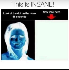👉 Focus on the small dot on the nose for about 15 seconds