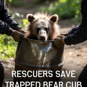 Rescuers Free Bear Cub Trapped Inside Metal Barrel in Forest