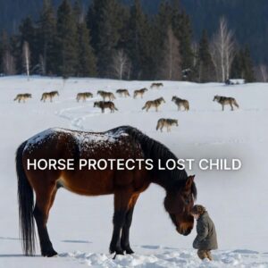 Horse Stands Guard Over Lost Child in Snow While Wolves Circle Nearby