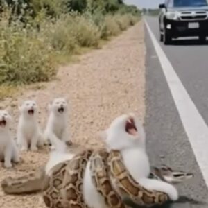 Tiny Kittens Try to Save Their Mother From Snake