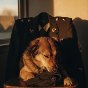 Some bonds don’t end when someone leaves. Some bonds stay… even when silence takes their place. In this touching moment, a loyal dog rests beside the uniform…