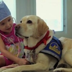 In a quiet hospital room filled with machines and soft beeping sounds, something extraordinary was happening — something no medicine could ever replace. A little girl, dressed…