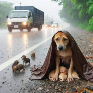 Mother Dog Protects Her Puppies in Heavy Rain — What a Passing Driver Did Next Changed Everything