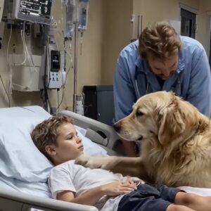 The hospital room was quiet. Machines beeped softly, nurses moved in and out, and everything felt routine—until people noticed the dog. Lying gently beside the woman, his…