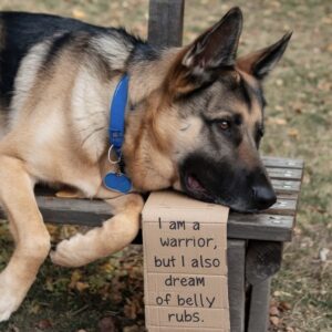 He doesn’t bark for attention. He doesn’t jump or beg. Instead, this gentle German Shepherd lies quietly on a bench… holding onto something far more powerful than…