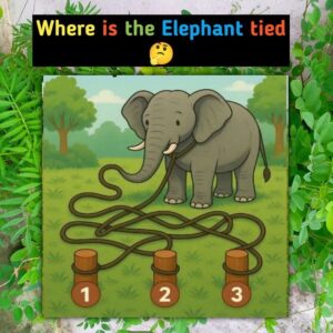 At first glance, this puzzle looks simple. An elephant stands calmly while three ropes appear to connect it to posts labeled 1, 2, and 3. Most people…
