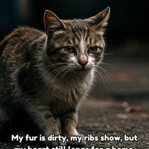 Every day, this cat returned to the same place. Thin, dirty, and clearly exhausted, it would quietly sit and watch people pass by. Its ribs showed through…