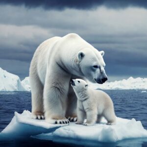 Polar Bear and Cub Standing on Melting Ice Highlights Changing Arctic
