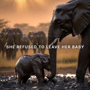 the vast African savannah, a powerful moment of determination unfolded between a mother elephant and her struggling calf. The young elephant had wandered into a patch of…