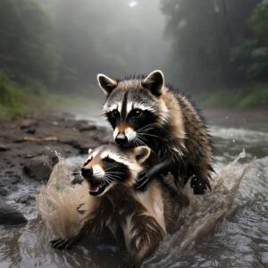 Raccoon Rescues Companion from Muddy River in Remarkable Wildlife Moment