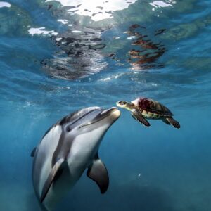 Dolphin Approaches Injured Sea Turtle in Rare Ocean Encounter