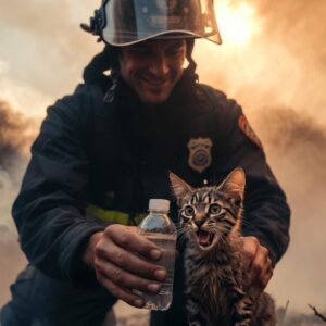 Firefighter Rescues Frightened Kitten from the Ashes After Devastating Fire