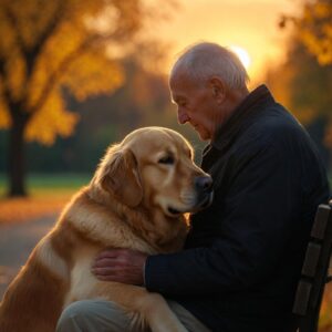Loyal Dog Comforts Elderly Owner During Quiet Sunset in the Park